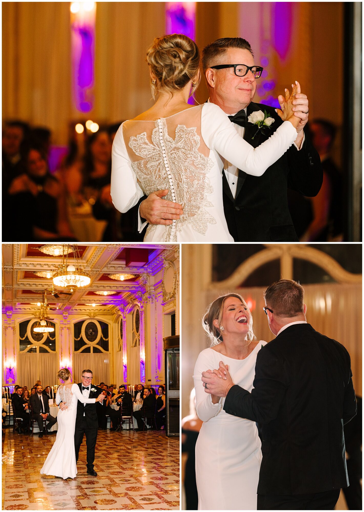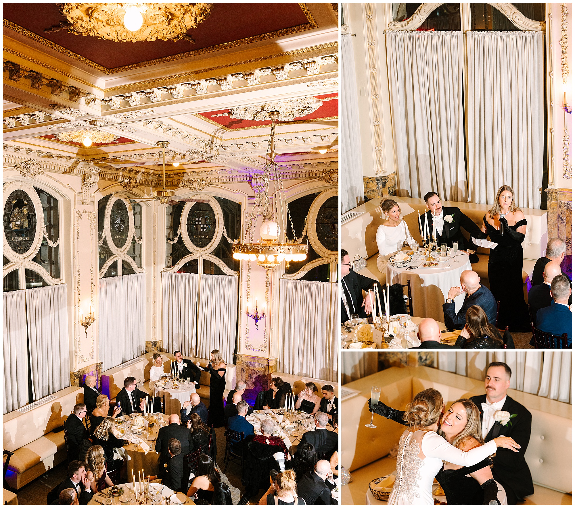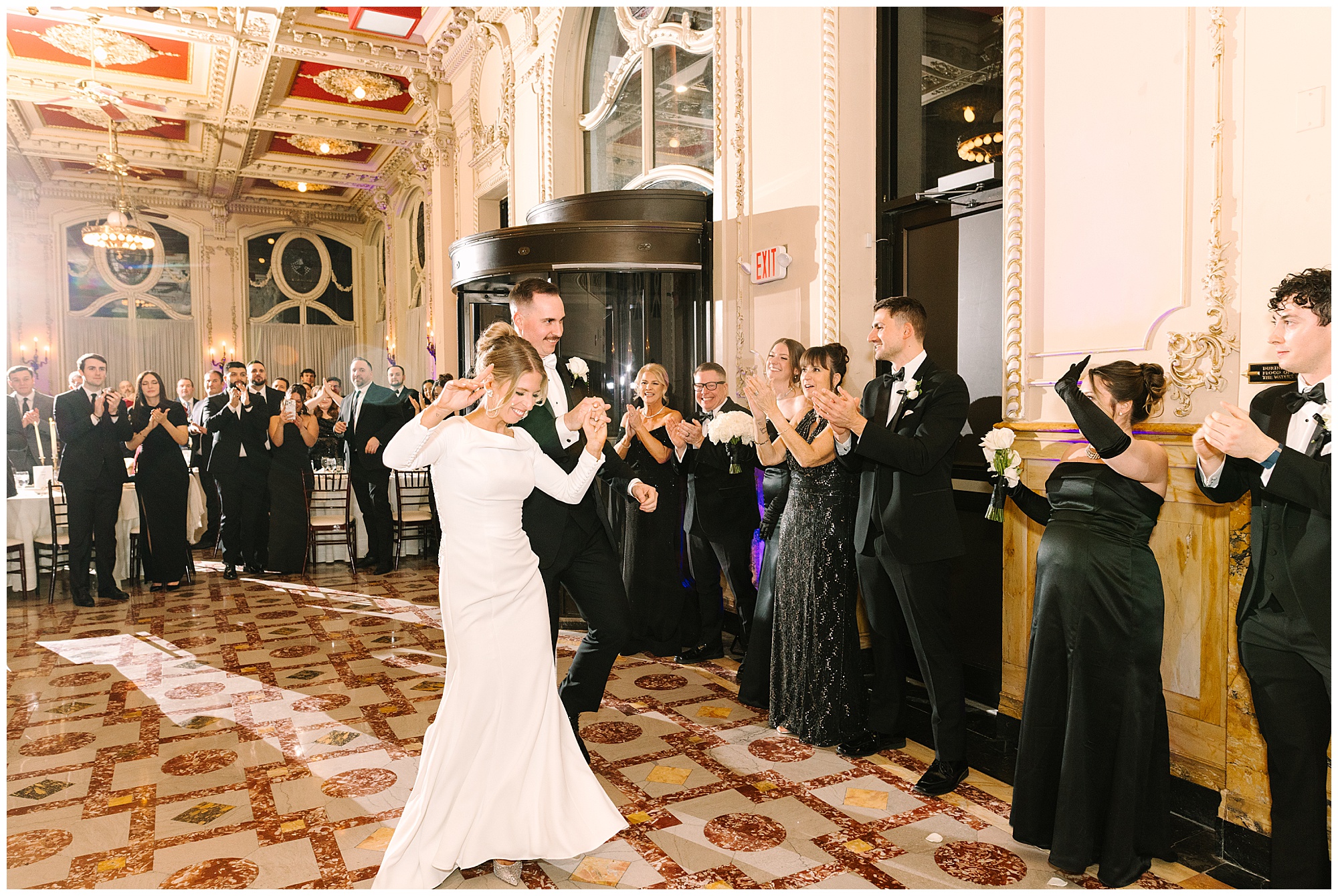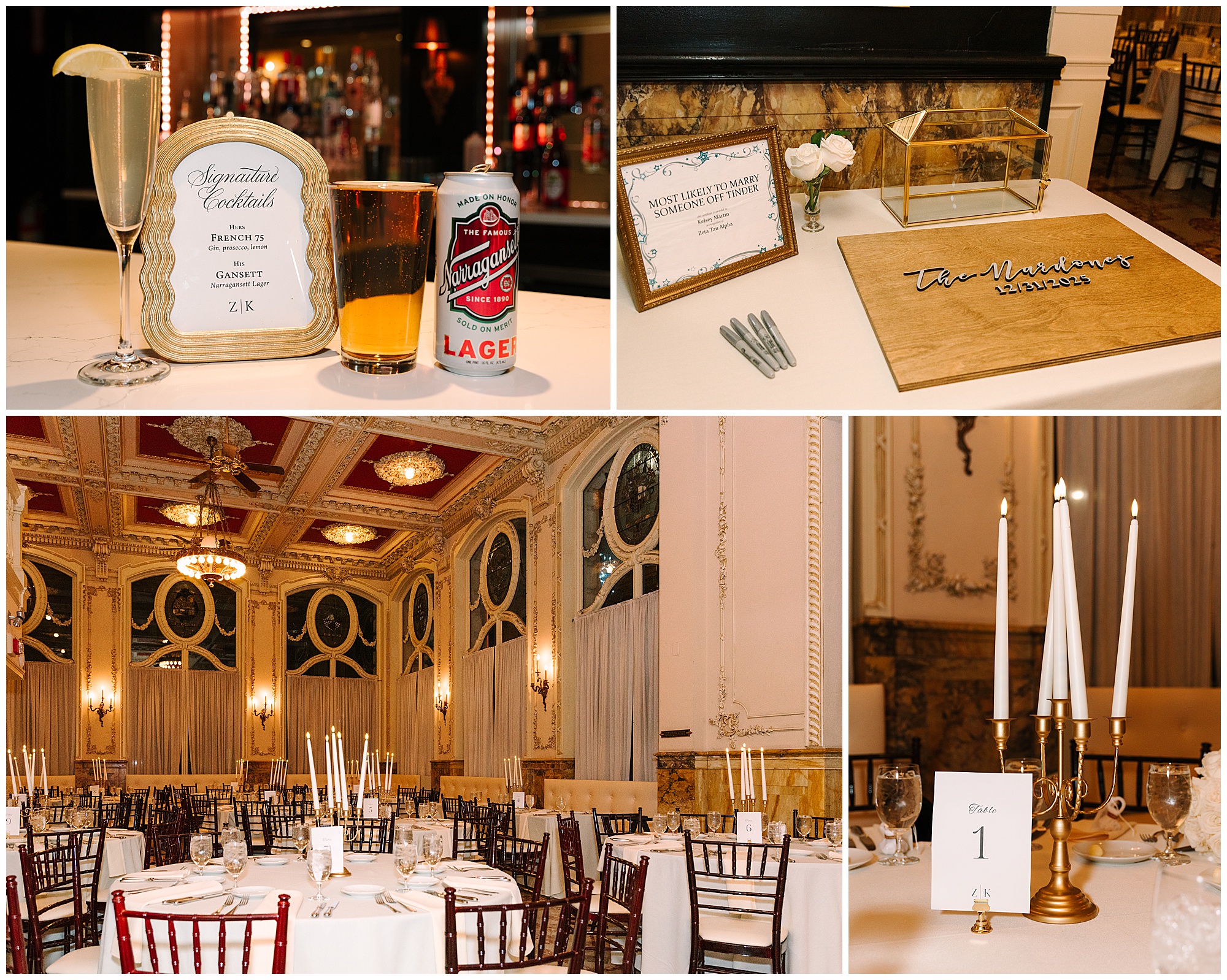 Its location in downtown Providence also makes it incredibly convenient. For this wedding, the couple chose to hold their ceremony at the nearby Providence G Ballroom. It was just a quick one minute walk away. After a champagne at the Providence G guest transitioned into their reception at the Reserve. This seamless flow between ceremony and reception is a huge plus for guests, especially during the colder winter months.