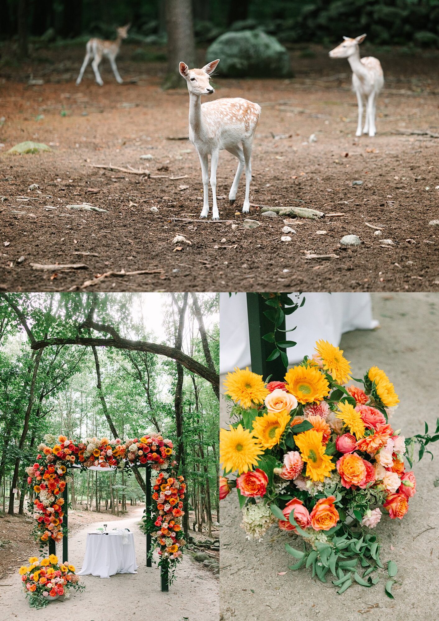 First of all, who doesn’t want to feed giraffes on their wedding day? Southwicks Zoo made the start of married life extra special with a giraffe feeding followed by a deer forest ceremony. If you ever wanted to invite deer to watch you get married, this is the place. The deer forest made the wedding ceremony truly feel like it was straight out of a Disney movie.